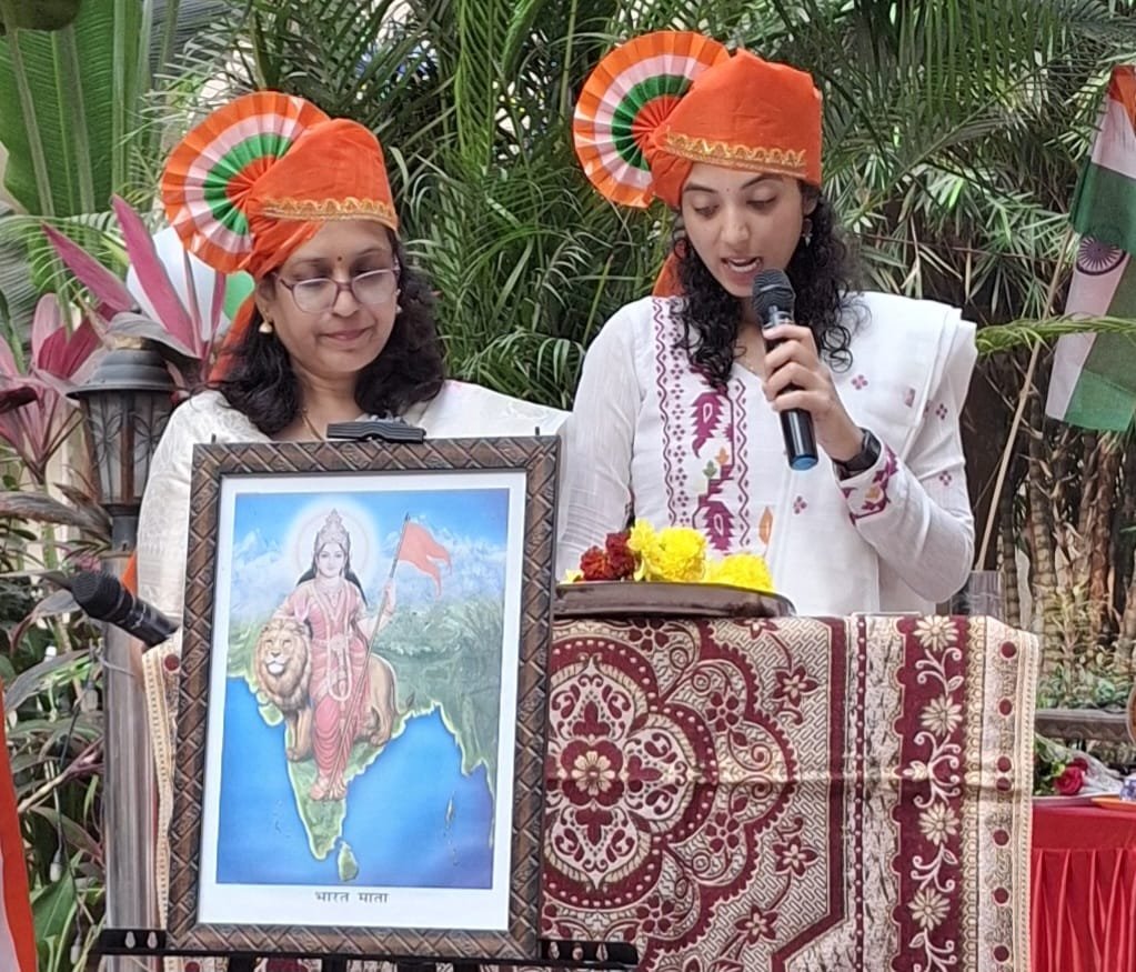 वंदे मातरम राष्ट्र गाण ला दीडशे वर्षे पूर्ण झाल्याबद्दल सौ लता जनार्दन यांनी या गाणचा अर्थ सोप्या शब्दात समजावून सांगितला. तर श्री श्रीकांत जोशी यांनी तन्मयतेने वंदे मातरम् राष्ट्र गाण गाऊन दाखविले.