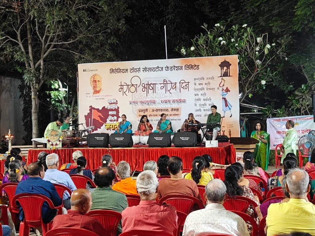 या दिवसाचे औचित्य साधून मिलेनियम टॉवर्सच्या मराठी रहिवाशांनी २८ फेब्रुवारी २०२६ रोजी अ-क्षरकाव्य समूह, नवी मुंबई यांचा “उत्सव शब्दसुरांचा … ध्यास मराठीचा” हा मराठी कविता व गाणी असा दोन अडीच तासांचा अतिशय सुंदर कार्यक्रम आयोजित केला होता.