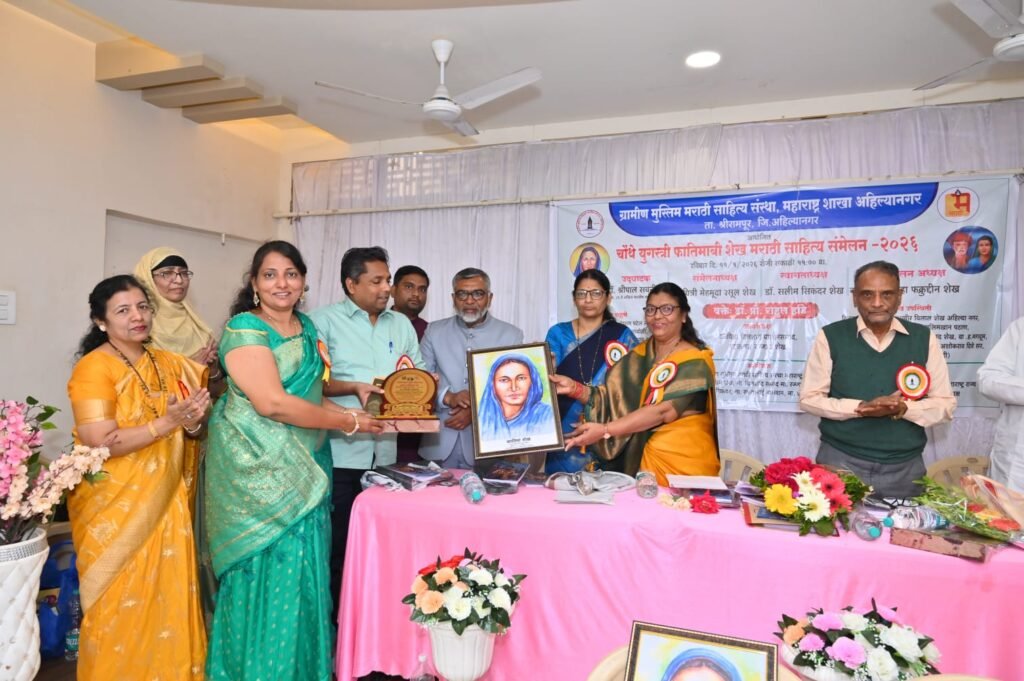 चौथे युगस्त्री फातेमाबी शेख मुस्लिम मराठी साहित्य संमेलन कवयित्री मेहमूदा रसूल शेख यांच्या अध्यक्षतेखाली अहिल्यानगर जिल्ह्य़ातील श्रीरामपूर येथे थाटात संपन्न झाले.
