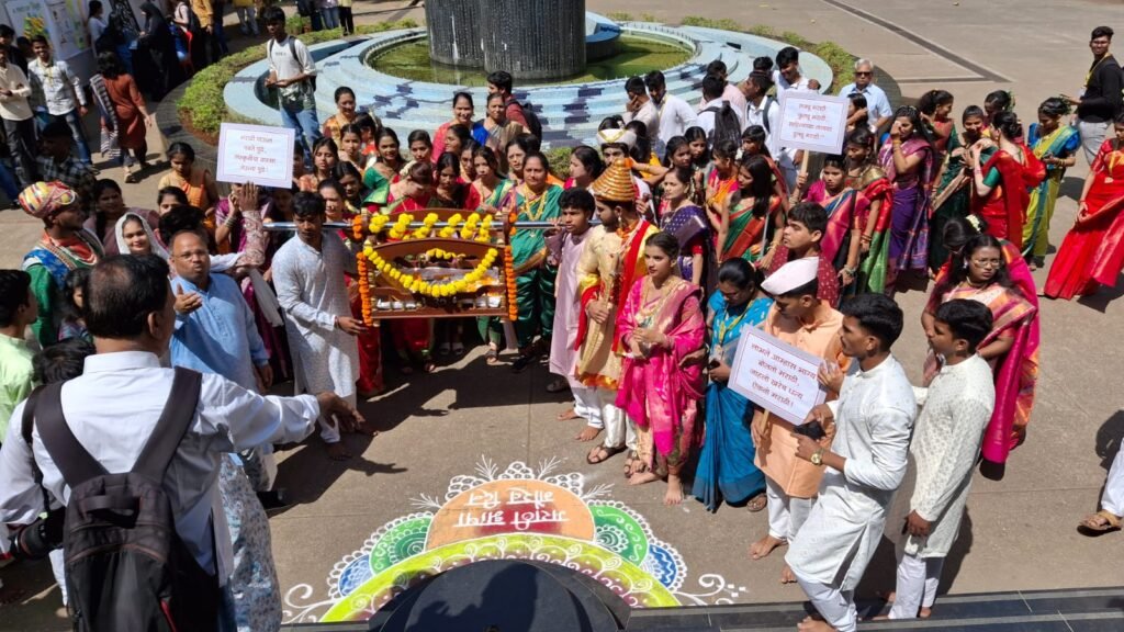 प्रारंभी पारंपरिक मराठी वेशभूषा परिधान केलेल्या विद्यार्थी आणि विद्यार्थिनींनी पालखीत विसावलेल्या माऊलीला खांद्यावर घेऊन ग्रंथ दिंडी काढली.