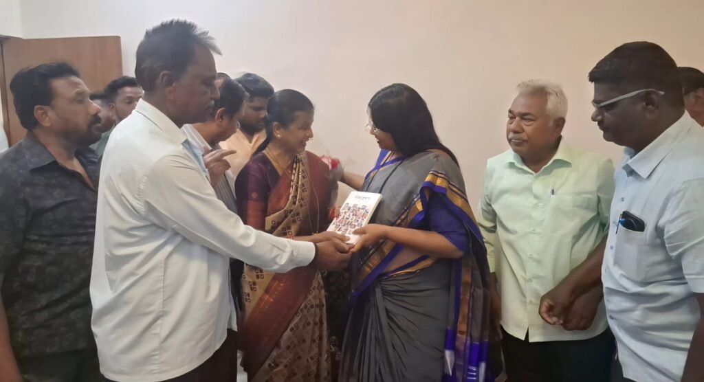 देवेंद्र भुजबळ लिखित, ग्रंथाली निर्मित, न्यूज स्टोरी टुडे प्रकाशित, “संवादभूषण” पुस्तकातील एक कथा नायिका, सोलापूर येथील सौ कांचन देशभूषण कंदले ह्यानी नवनिर्वाचित राज्यसभा सदस्य तथा खासदार प्रा. डॉ.ज्योती वाघमारे यांना त्यांच्या सोलापूर दौऱ्यात नुकतेच संवादभूषण पुस्तक भेट दिली.