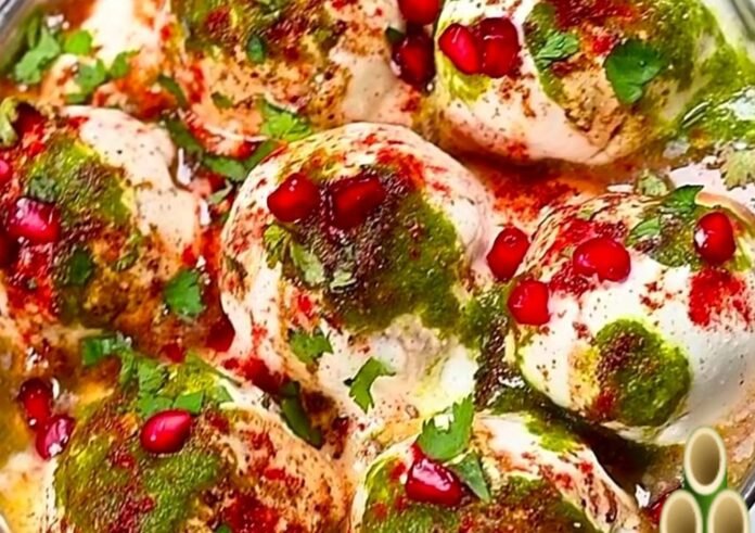 प्रथम ब्रेडच्या कडा काढून घ्याव्यात. या वाळवून त्याची पावडर बनवून ठेवली तर ब्रेडक्रमस म्हणून छान उपयोग होतो. दह्यामधील 2..3 चमचे दही घेऊन त्यात किंचित मिठ घालून दीड ते दोन मध्यम वाट्या पाणी घालून व्यवस्थित घुसळून घ्यावे.आता एकेक ब्रेडचा स्लाईस त्यात बुडवून दोन्ही हातानी घट्ट दाबून घ्यावा. त्यात तीन चार काजू व बदामाचे तुकडे घालून त्याला लाडू सारखा गोल आकार द्यावा व एका खोलगट सर्व्हिंग डिश मध्ये ठेवावा. असे सर्व बनवून झाले की, उरलेल्या दह्यात एक..दोन चमचे पिठीसाखर घालावी. दह्याच्या आंबटपणा नुसार आणि आवडी नुसार, आणि थोडेसे मिठ सुद्धा चवीसाठी घालावे. मस्त फेटून घ्यावे. आता हे फेटलेले दही या वाड्यांवर घालावे. मग त्यावर चिंच गुळाची आंबट – गोड चटणी, हिरवीगार तिखट चटणी घालावी.त्यावरून बारीक शेव घालावी. मग एकदम बारीक चिरलेली कोथिंबीर आणि आवडत असेल तर एकदम बारीक चिरलेली थोडीशी कांद्याची पात, घालावी.